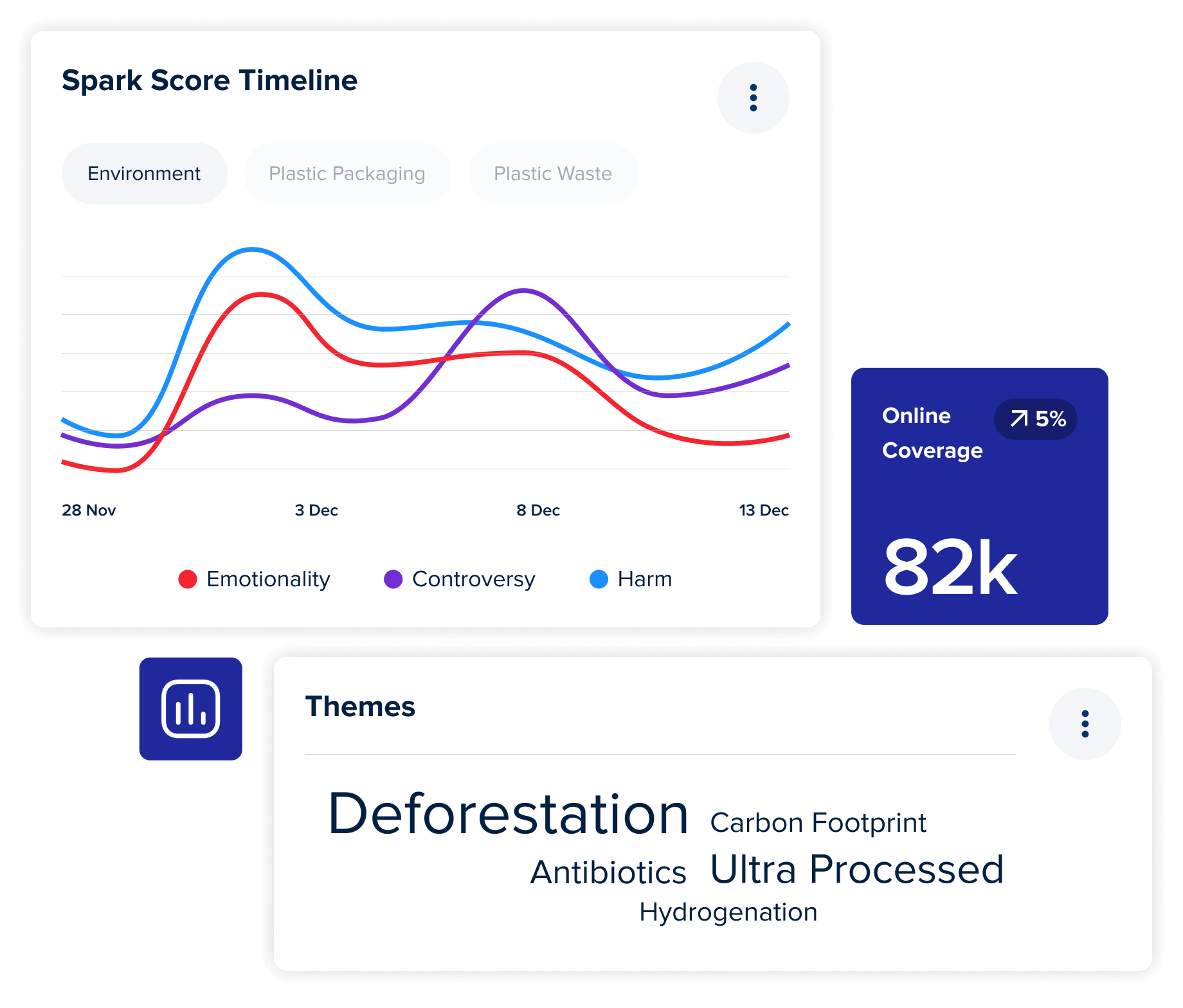With just a few clicks, you can build intuitive, insights-rich dashboards highlighting a variety of metrics and convert them to executive-ready reports. Finally, our proprietary React Score identifies content that could potentially harm your brand – such as hate speech, fake news, controversy, sarcasm and spam – as it’s happening, so you can respond quickly and appropriately.